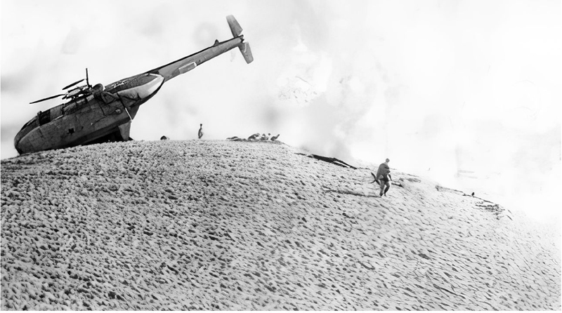 Сбитый вертолёт Ми-8 майора В. Ф. Краснова – капитана А. А. Пьяных после вынужденной посадки и попытки самостоятельно вылезти из весенней грязи в районе к. Нанабад, 5 февраля 1982 г.