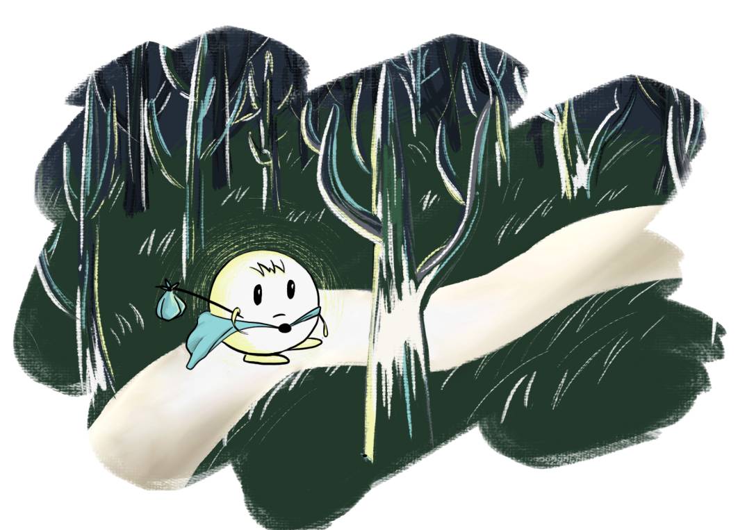 Стеклянный лес – удивительное место, волшебные деревья невидимыми силами действовали на путников, заманивая в свои чащобы. Мало кому удавалось выбраться из этой зачарованной рощи. Лес манил и манил электрончика, так бы он и остался, наверное, навсегда в нем. Но вот на одной из опушек, между деревьями, он заметил шелковую тропинку, всеми силами устремился к ней, и дорожка вывела Вову на окраину леса. Вдали он заметил какие-то дома и решил двигаться к ним.