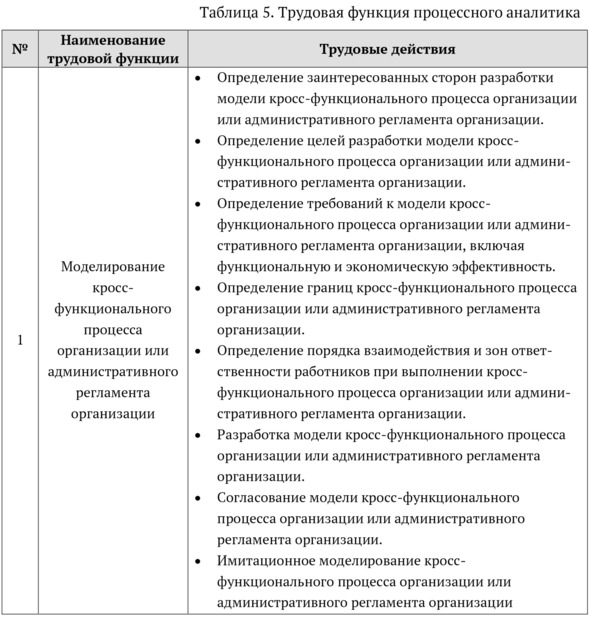 В соответствии с профессиональным стандартом «Специалист по процессному управлению» №1138 (утвержден приказом Министерства труда и социальной защиты РФ от 17 апреля 2018 г. №248н) бизнес-аналитик (процессный аналитик) в рамках обобщенной трудовой функции «Проектирование и внедрение СУБП компании» выполняет следующие трудовые функции.