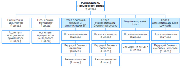 На рис. 5 показана структура процессного офиса для организации численностью 1000—5000 работников.