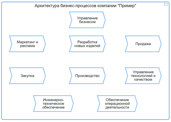 Рис. 8. Пример архитектуры бизнес-процессов компании в нотации VAD. Уровень процессных категорий