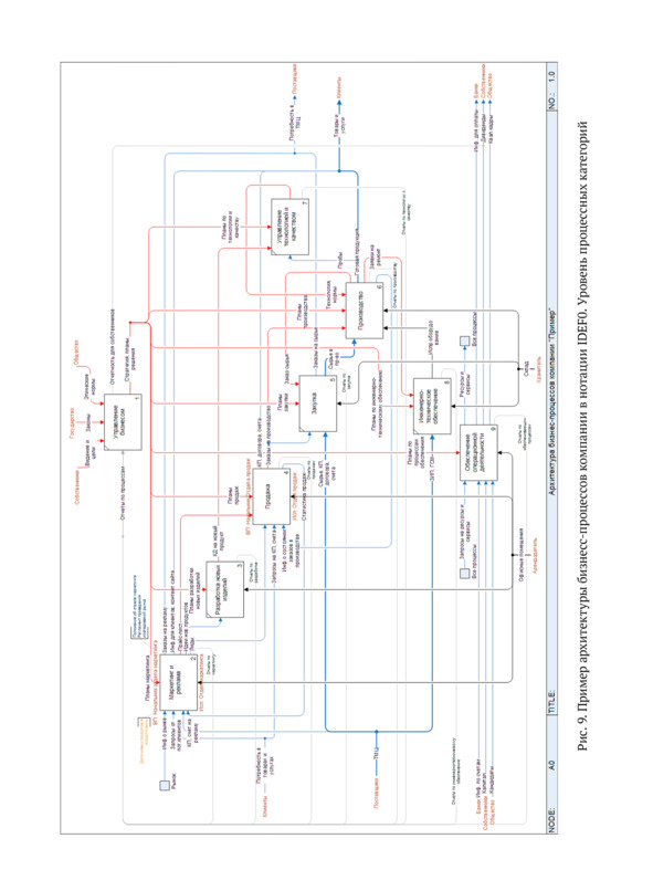 На рис. 9 показан учебный пример архитектуры бизнес-процессов компании, представленный в нотации IDEF0. Модель подготовлена с использованием программного продукта Business Studio 6.