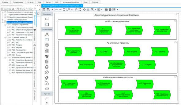 Рис. 11. Архитектура бизнес-процессов в нотации VAD