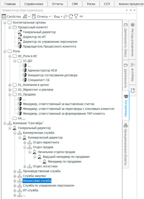Рис. 14. Справочник организационной и ролевой структуры