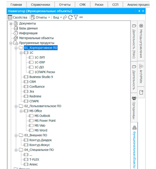 Рис. 17. Справочник «Программные продукты» в Business Studio 6