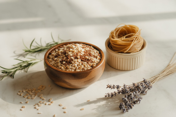 Приготовление: Отвари гречку до рассыпчатого состояния (15—20 минут). Нарежь куриную грудку кубиками и обжарь до золотистой корочки. Добавь натёртую морковь и нарезанный лук, готовь 3 минуты. Влей ложку томатной пасты, немного воды и туши под крышкой 5 минут. Соедини с гречкой, приправь любимыми травами.