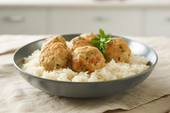 14:00 – Обед: Куриные тефтели с рисом (~430 ккал)
