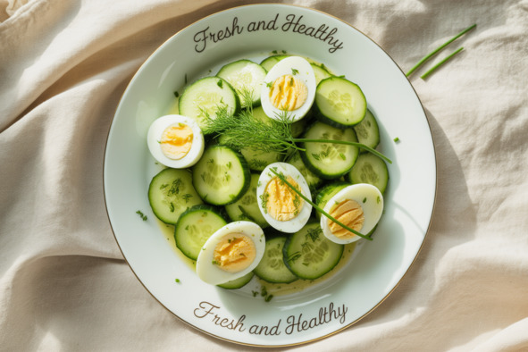 Лёгкий, но питательный ужин идеально подходит для вечера. Яйца богаты белком, который надолго обеспечивает чувство сытости и помогает мышцам восстанавливаться после дневной активности. Огурец добавляет свежесть и объём блюду без лишних калорий.