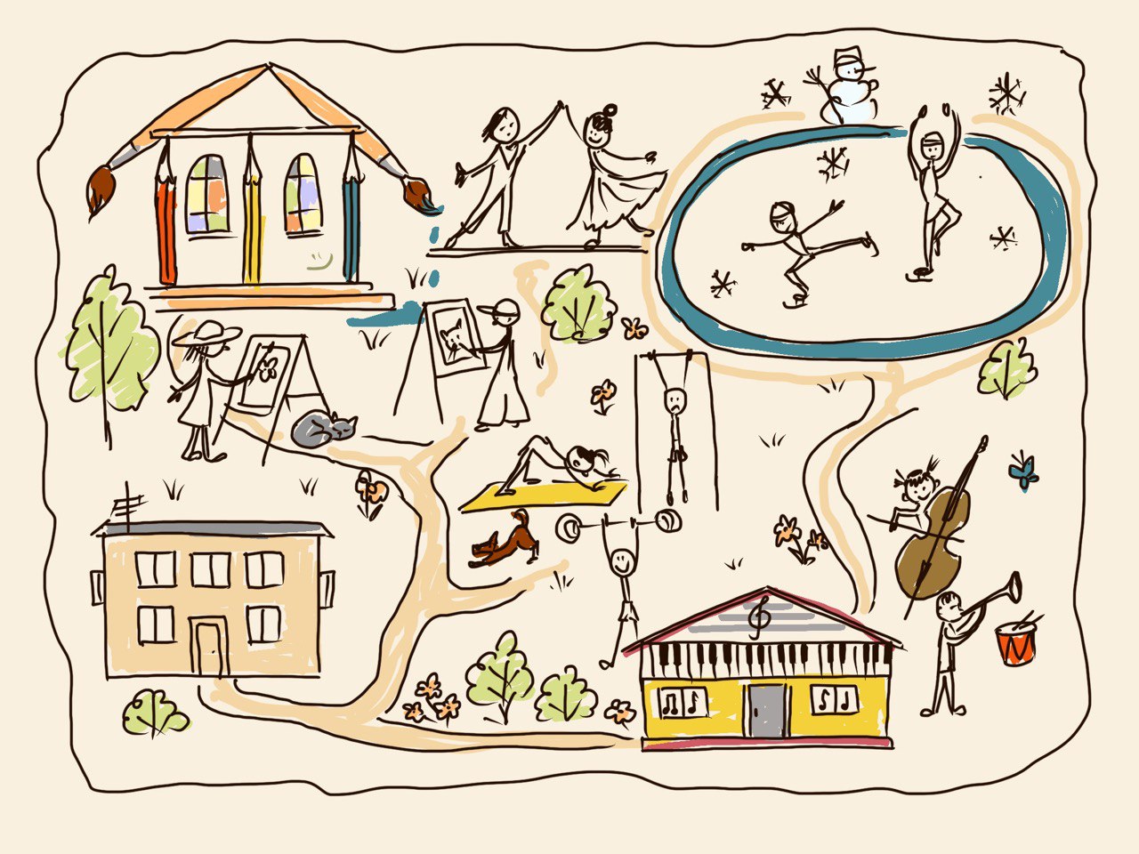 И девочка с утра до вечера учила и узнавала новое. После обычной школы она шла в другие школы. В музыкальной – Фаня училась играть на скрипке и фортепиано. В художественной – рисовать гуашью и акварелью. В танцевальной– вальсировать. В спортивной– кататься на коньках. Перед сном мама читала дочке сначала энциклопедию, а затем – сказки.