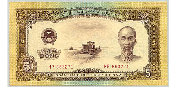Пять вьетнамских (социалистических) донгов 1958 года.