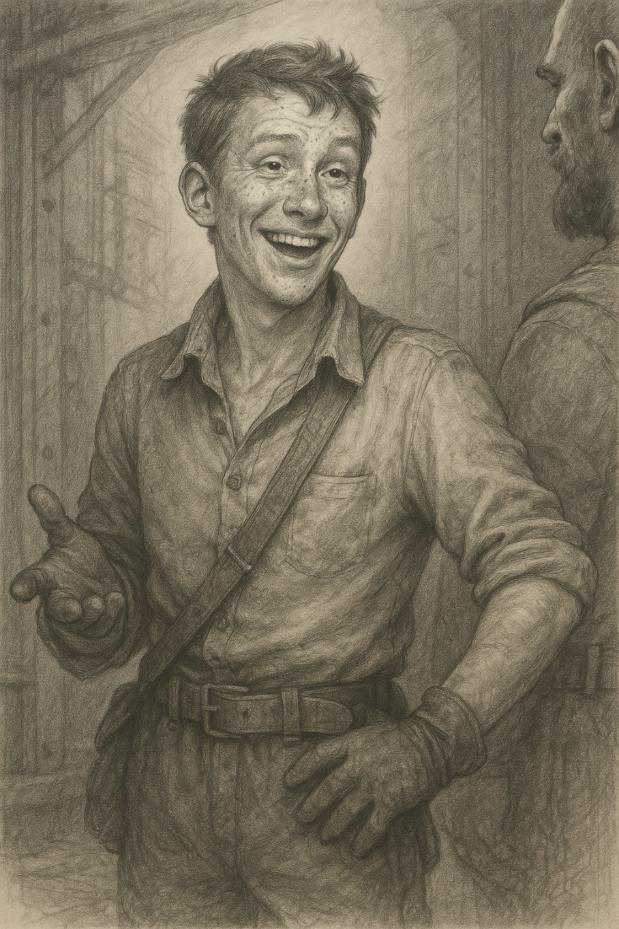 – Ой, ты так широко открыл рот, смотри, а то последние зубы растеряешь. – огрызнулся мальчик. Остальные члены бригады засмеялись – они откровенно получали удовольствие от этого обмена любезностями.