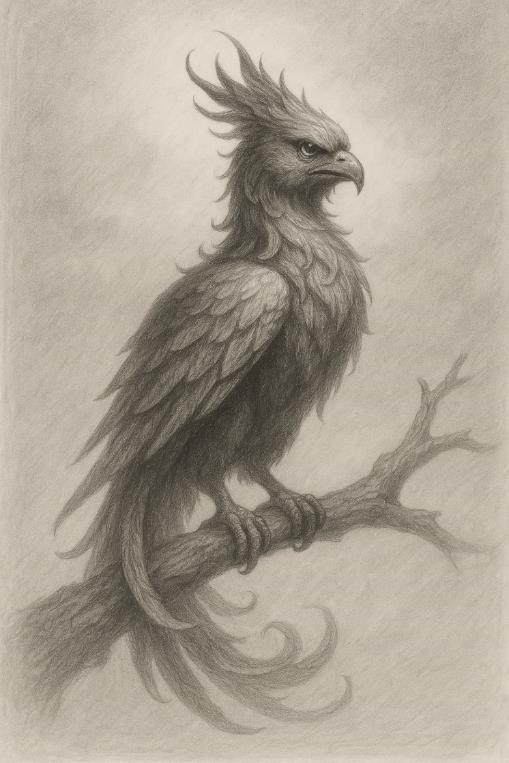 Рядом с ним появилась птица. Что-то новое – этого в кошмаре никогда раньше не было! Она была прекрасная и пугающая. Крупнее петуха, с оперением, словно сотканным из живого пламени – красно-жёлтым с дымчатыми концами, будто их присыпало пеплом, массивным хохолком и умным не по-птичьему взглядом.