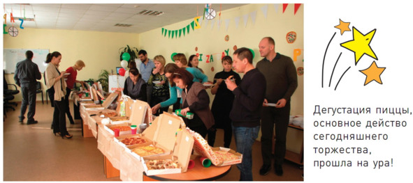 Кроме «тяжелой» (многие отказались от обеда) дегустационной практики были и творческие моменты. В частности, обсуждали варианты названия нашей будущей сети пиццерий, наименования фирменных пицц и слоганов для футболок и фартуков.