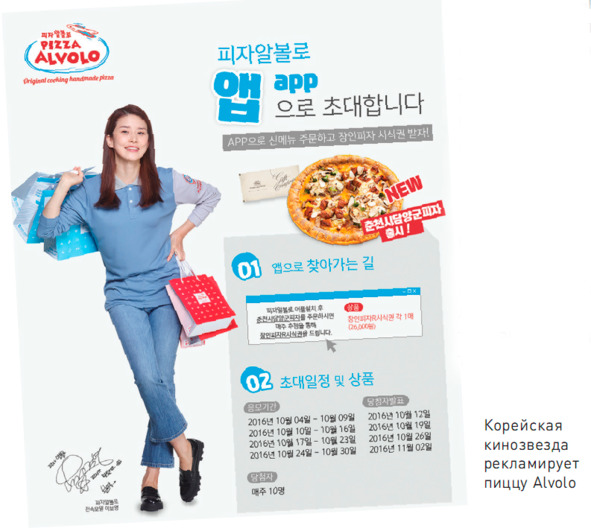 Корейская кинозвезда рекламирует пиццу Alvolo.