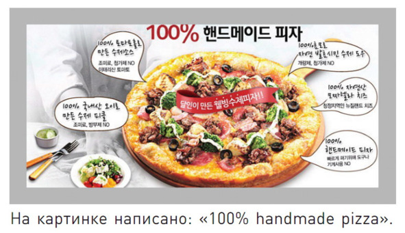 На картинке написано: «100% handmade pizza».