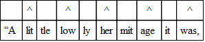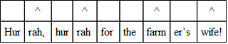 Again, the last foot of each line may be one syllable short. This may occur when the accent is on the first syllable of a foot; that is, when the foot is trochaic or dactylic. The scheme is like this: