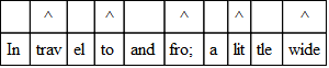 Another beautiful example is found in the last stanza of the same poem. It is in the first two feet of the fifth line. Here the regular accent has yielded to an accent on the middle syllable and there are two amphibrachs. Notice, too, how it is almost impossible to tell in the next foot whether the accent goes upon the second or upon the third syllable. It is hovering between the form of the first two feet and the anapest of the last foot.