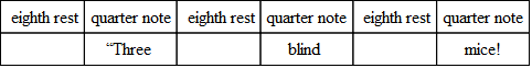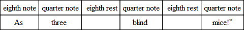 “Tiger, Tiger, burning brightIn the forests of the night,What immortal hand or eyeFramed thy fearful symmetry?”Silences may occur in the middle of a verse of poetry as well as at the beginning or the end. In the following nursery rhyme it is clear that the prevailing foot is anapestic, though several feet are iambic, and in the first two lines and the last line a single syllable makes a foot. Silences are introduced here as rests are in music.