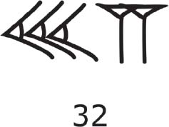 These two signs were used to provide an additive notation for all numbers up to 59. For example, the number 32 was written as three chevrons followed by two nails.