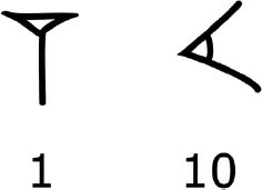 In the second millennium BC, it was the town of Babylon that now shone brightly over the Near East. Cuneiform writing was still in vogue, but now, just two symbols were used: the simple nail that had the value ‘1’ and the chevron with the value ‘10’.