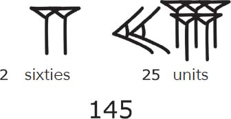 For example, the number 145 consists of two sixties (which make 120) to which you have to add 25 units. The Babylonians would therefore have denoted it as follows: