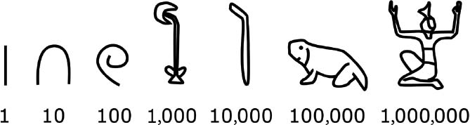Because it was so close to Mesopotamia, Egypt did not lag far behind in adopting writing, and developed its own numeration symbols from the start of the third millennium.