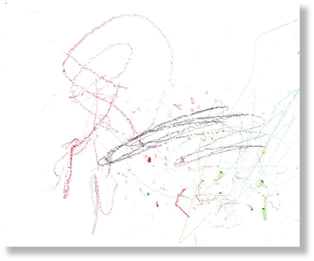 Similarly, a 31 month-old girl drew the following disarray of short and disjointed lines, and while drawing, she said: “This is a barking dog, woof, woof”.