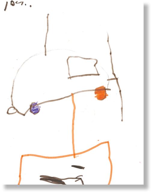 The resulting images often do not make visual sense, but they are accurate as far as the child is concerned because they document the characteristics and functions of the object in question. Thus, this 45 month-old draws a three-wheeled car, despite the fact that it is not a common sight in daily life.