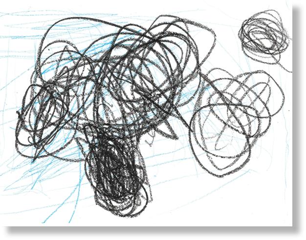 In many senses, these occasions are similar to the moments a child realizes he can produce sounds and begins to speak. Scribbling is thus akin to the infantile muttering. In both cases, the child begins a prolonged learning process by way of trial and error. He moves the drawing tool (changes his voice) in different directions and observes the different results on the page. Moreover, just as infantile murmuring or crying expresses a certain need or emotion (hunger, anger, boredom, etc.) scribbling is intentional, albeit pre-schematic.