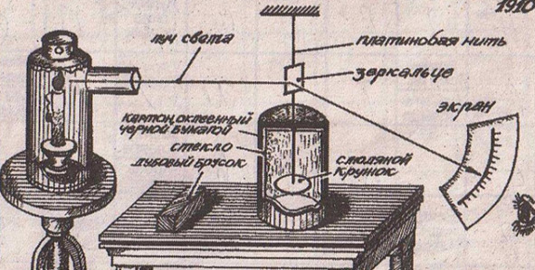 Let us turn to the article by V. Belyaev, published in "TM" No. 9, distant 1980. The author reproduces the experiments of Professor N. Myshkin (and also William Crookes), made at the beginning of the twentieth century. It turns out that the disk, suspended on a thin thread, for no apparent reason, periodically turns to one or another angle. These movements correlate with solar activity, the position of the moon, even when the scales are in the basement. As a first approximation, the torsion balance is the sensor for the hidden component of the light beam. In contrast to the semitransparent petal, which measures the pressure in the experiments of Academician P. Lebedev, our light recorder is a rather massive screen.