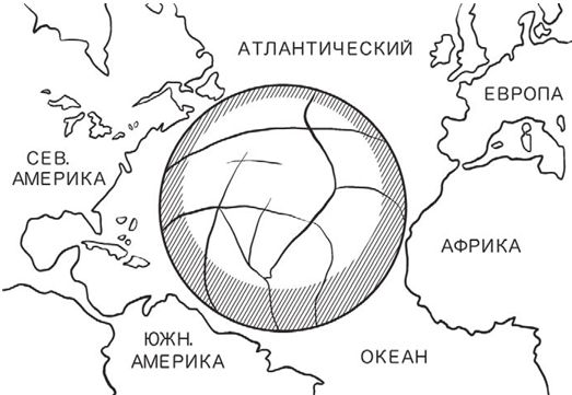 Величина Меркурия по сравнению с размерами земных материков. Если бы Меркурий упал на Землю, он мог бы поместиться в Атлантическом океане, между Америкой и Африкой