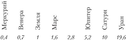 Теперь разделите все эти числа на 10, – и у вас получатся довольно точно расстояния планет от Солнца, если считать расстояние Земли за единицу: