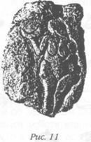 Еще одна «Венера», найденная во французском Лосселе и датируемая той же эпохой, является, по всей видимости, изображением богини, а не земной женщины – в правой руке она держит полумесяц (рис. 11). Некоторые специалисты полагают, что это всего лишь рог бизона, но, независимо от материала, из которого сделан полумесяц, он явно символизирует связь человека с небесами (в данном случае – с Луной).