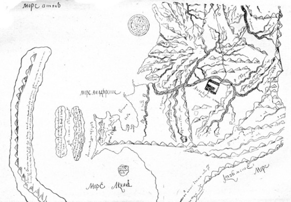 На карте якутским дворянином Иваном Львовым (служил Анадырском остроге в 1710 – 1714 гг.) изображен Анадырский острог и Анадырское море.