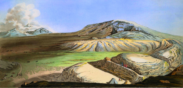 Вид на Машук и Бештау. П. С. Паллас. «Замечания о поездке в южные владения Российской империи в 1793 и 1794 годах». Leipzig: Bey Gottfried Martini, 1799