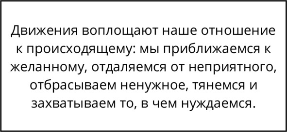 По такой цепочке мы распознаем состояние собеседника. Без движения значение происходящего будет неполным.