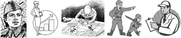 Высокие профессионалы – штабисты. Они занимаются тактической проработкой и реализацией идей стратегов. В последнем им помогают знатоки людей (люди с высоким социальным интеллектом). Работают штабисты по заданию и под контролем стратегов.