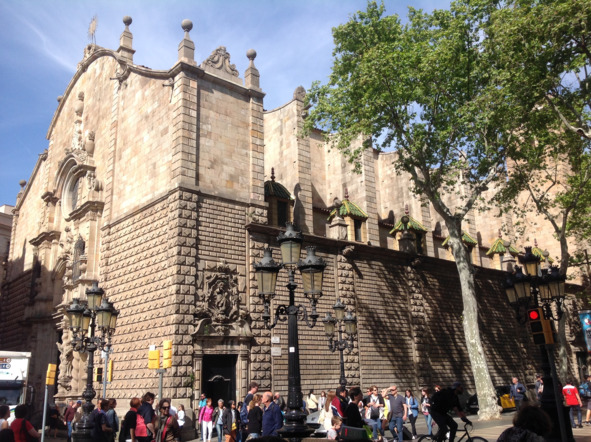 Большое здание в стиле барокко, которое непривычным образом для храмовых построек выходит на улицу Рамбла своим боковым фасадом – Церковь Богоматери Вифлеемской (Església de la Mare de Déu de Betlem).